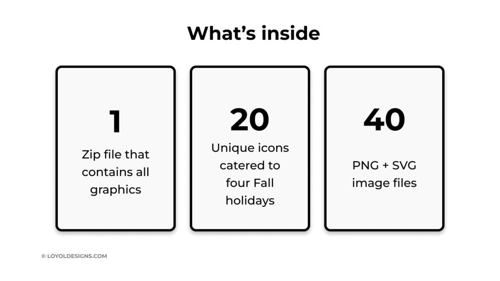 • Two sets of color variations (Black & Colored) per holiday event