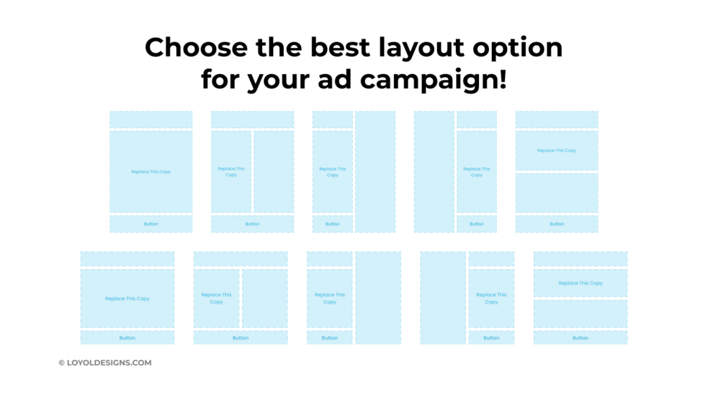 To save time, I've created a cheatsheet to help give you and your team get an overview of the top performing ad sizes on Google's platform as well as the different size options for 7 social platforms as of 2023. To sweeten the deal, I've meticulously crafted over 170 different layouts (4-5 layouts per ad size) to give you and your team a head start on your ad creative.